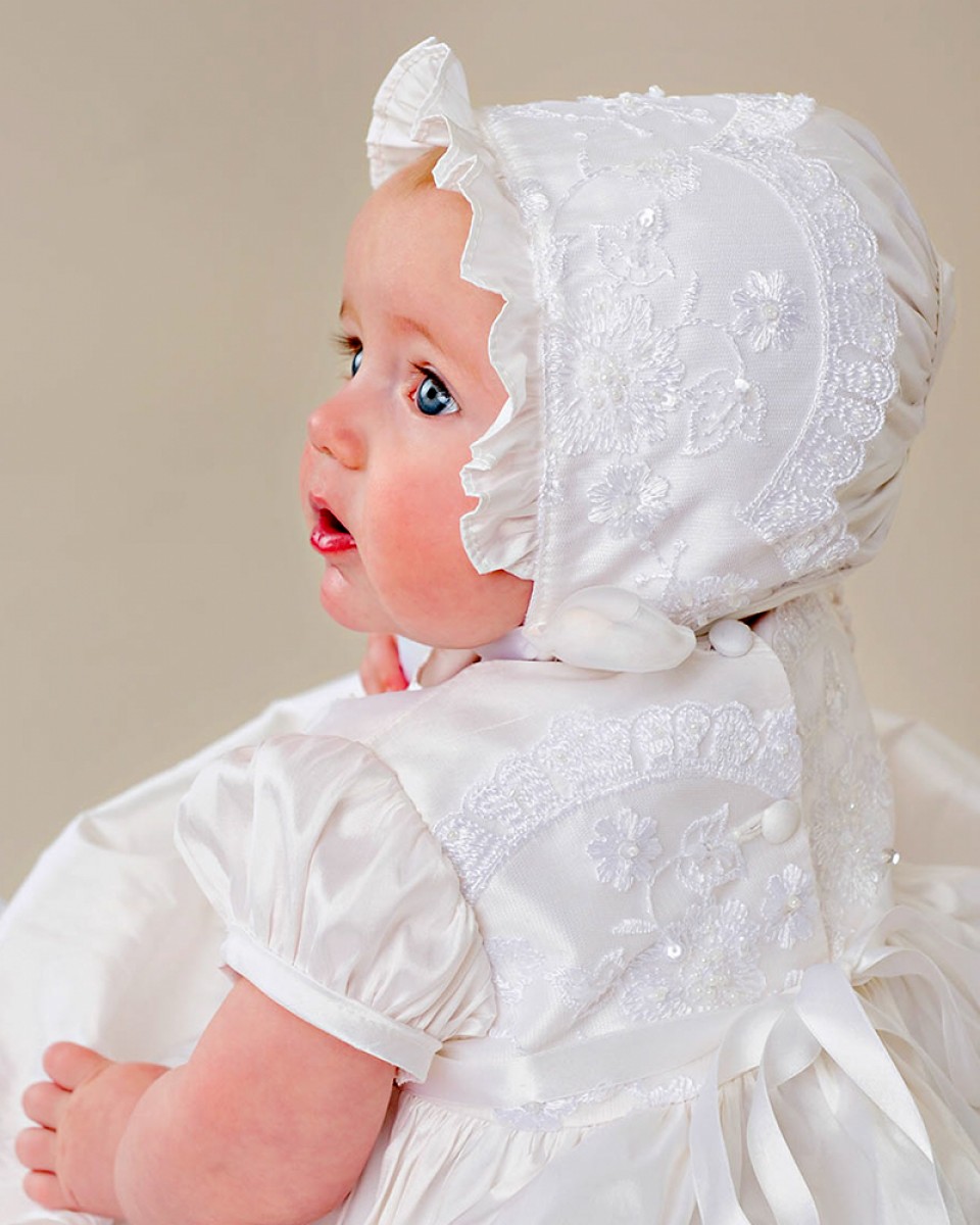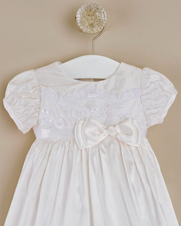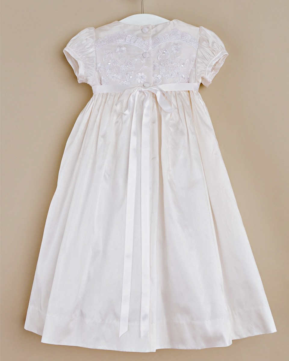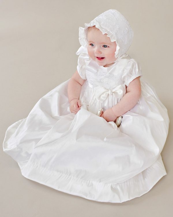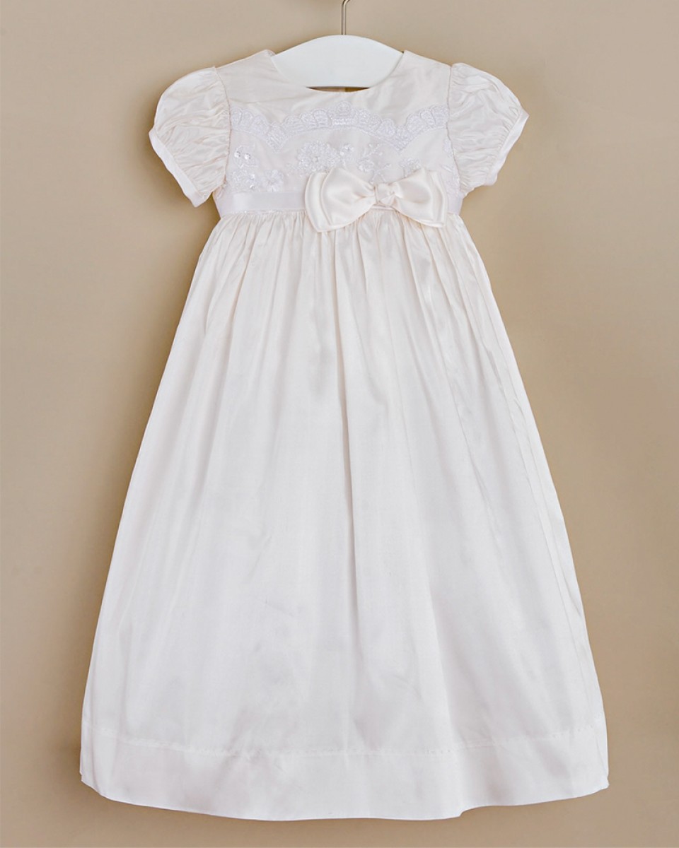 Simple elegance with the perfect touch of glam, our little Isabella silk christening gown has what it takes to steal the show!