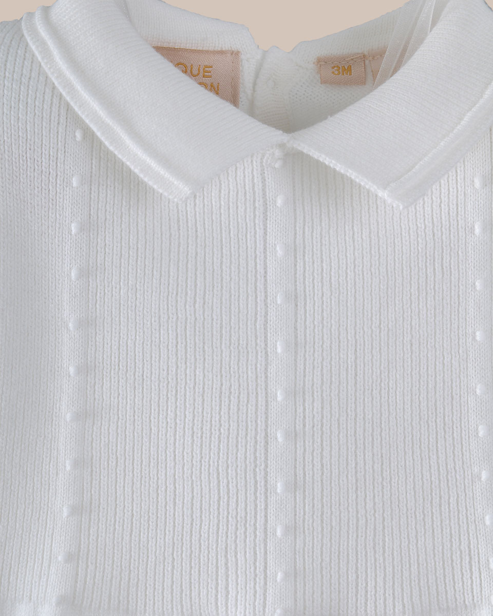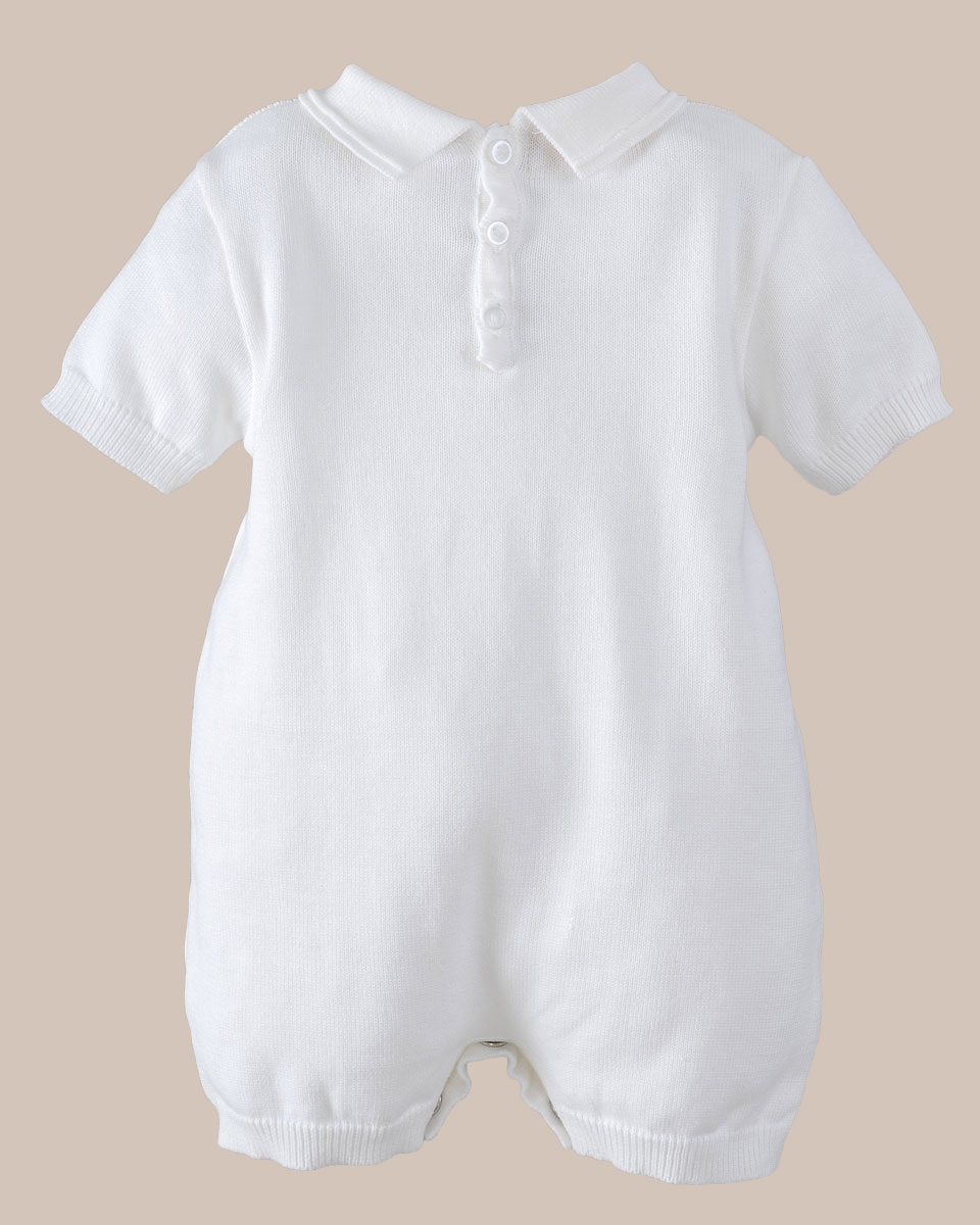 He’ll look like an angel in this dressy collared cotton knit outfit!
