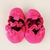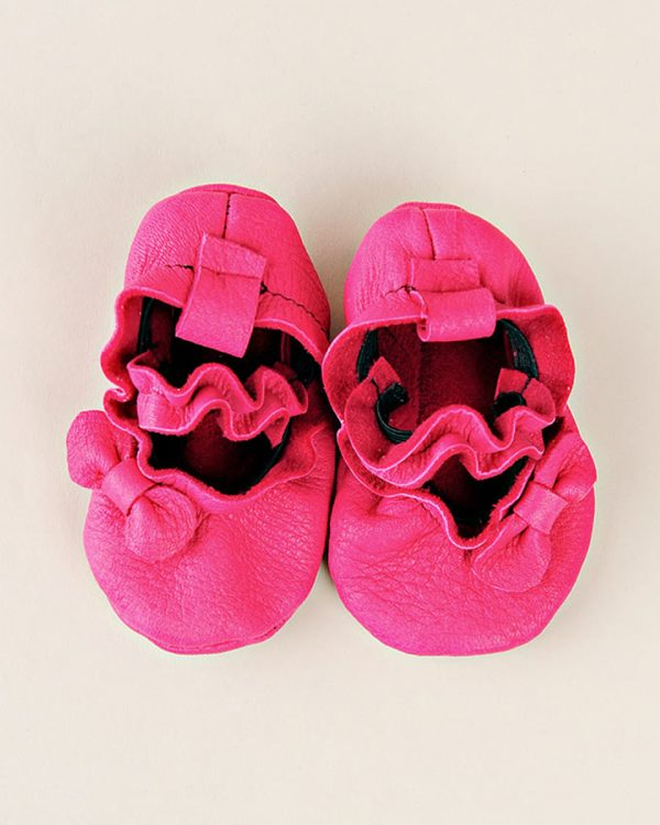 These adorable ballet moccasins are soft enough for your newborn, yet durable enough for your walking baby girl. Built in loops make it easy to add a ribbon tie. Snag a pair in each color to accessorize all her outfits!