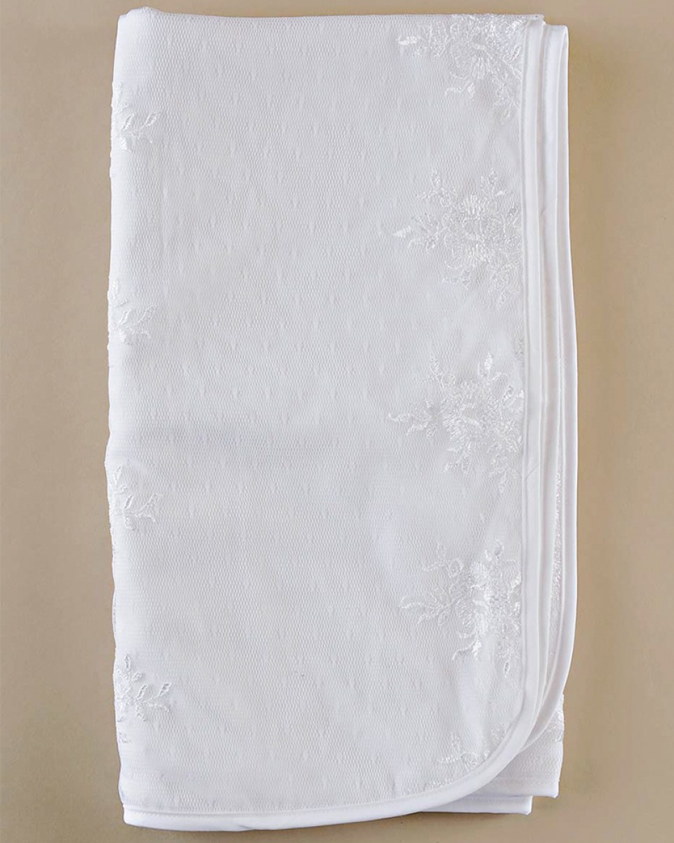 A perfect match for our Lillian gown, this lovely christening blanket is made of delicate embroidered netting lined with a soft flannel.