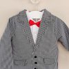 • 4 piece set: includes pants, bodyshirt, jacket and bow tie