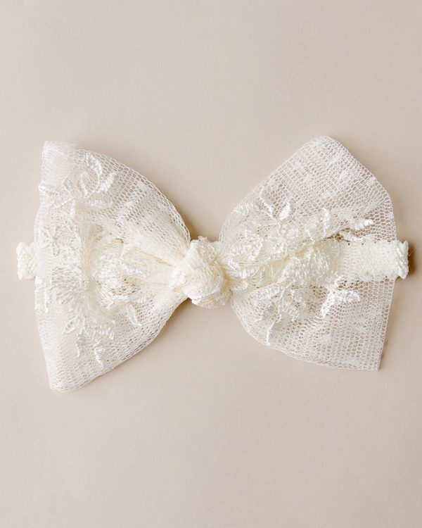 This lace bow is pure elegance for baby’s head and is a perfect match for our popular lace gowns.