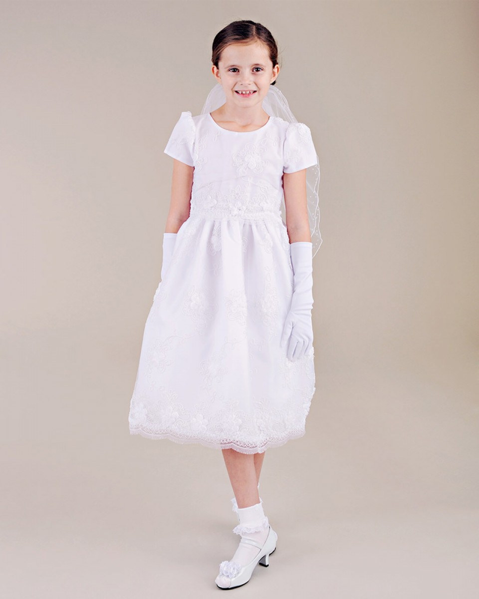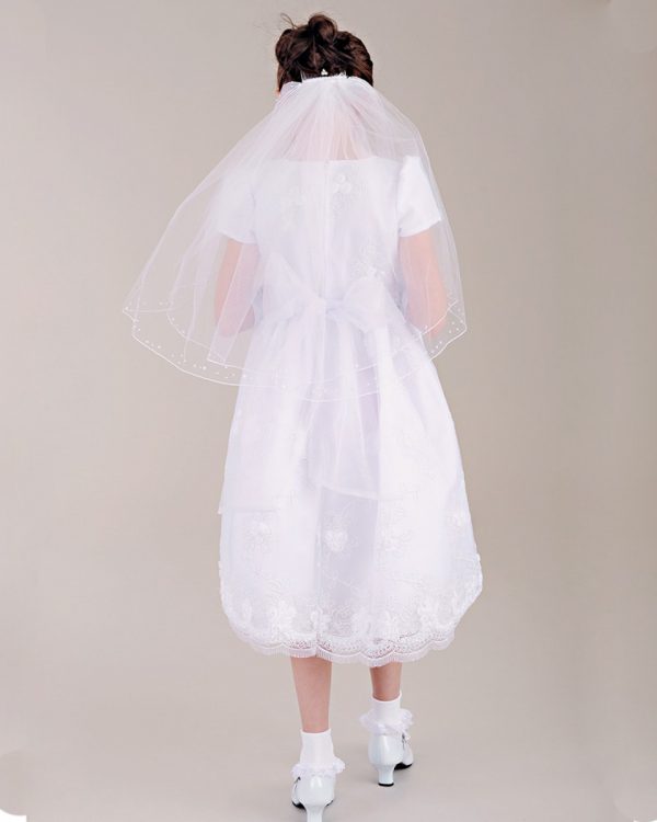 This beautifully detailed organza dress will make her feel like an elegant lady on her special day! *note: we’ve marked this new dress down to allow for occasional small flaws & discolorations in the embroidered details of this dress.