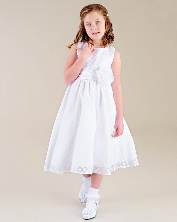 Fun and flirty, this sleeveless cotton dress features big polka dots and a bow at the waist. Perfect for your spring events!