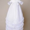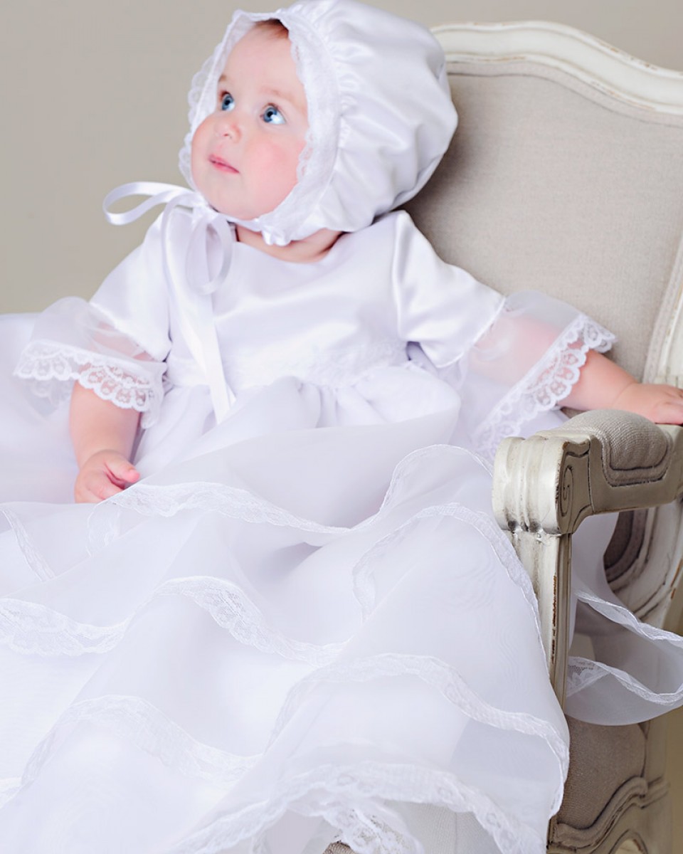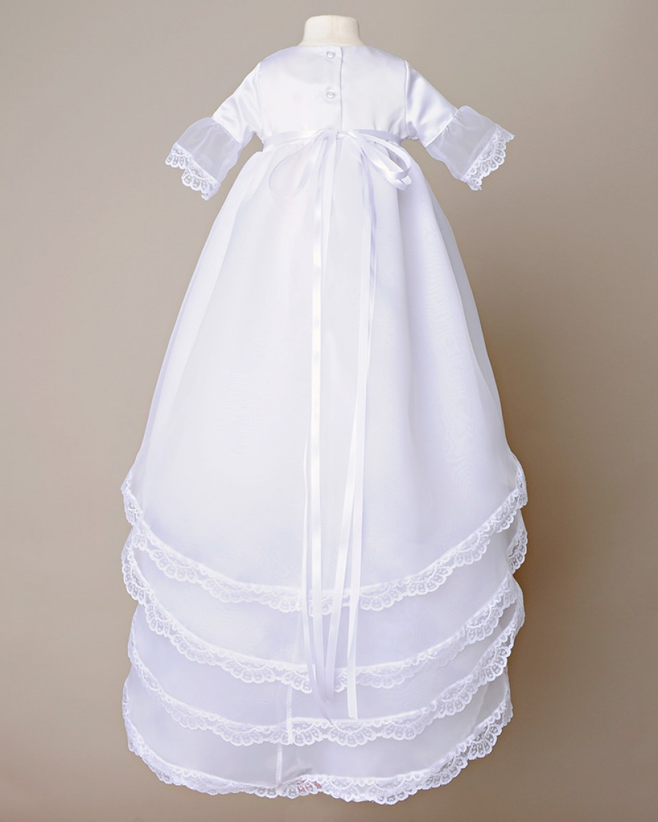 Gorgeous flowing ruffles cascade into this hi-low skirt. Pretty lace decorates each tier. So lovely!