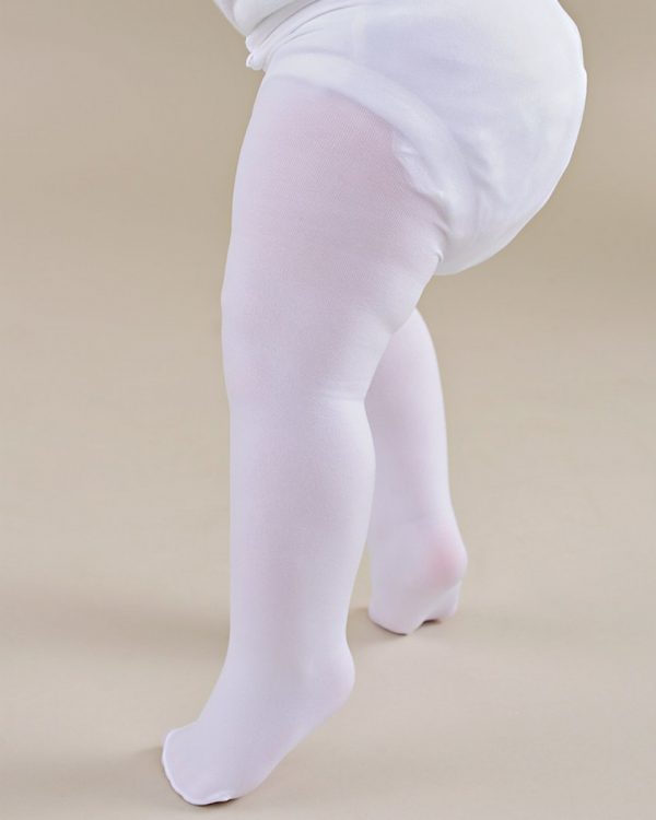 A simple finishing touch, these soft microfiber tights are perfect for any occasion. Available in your choice of white or ivory.