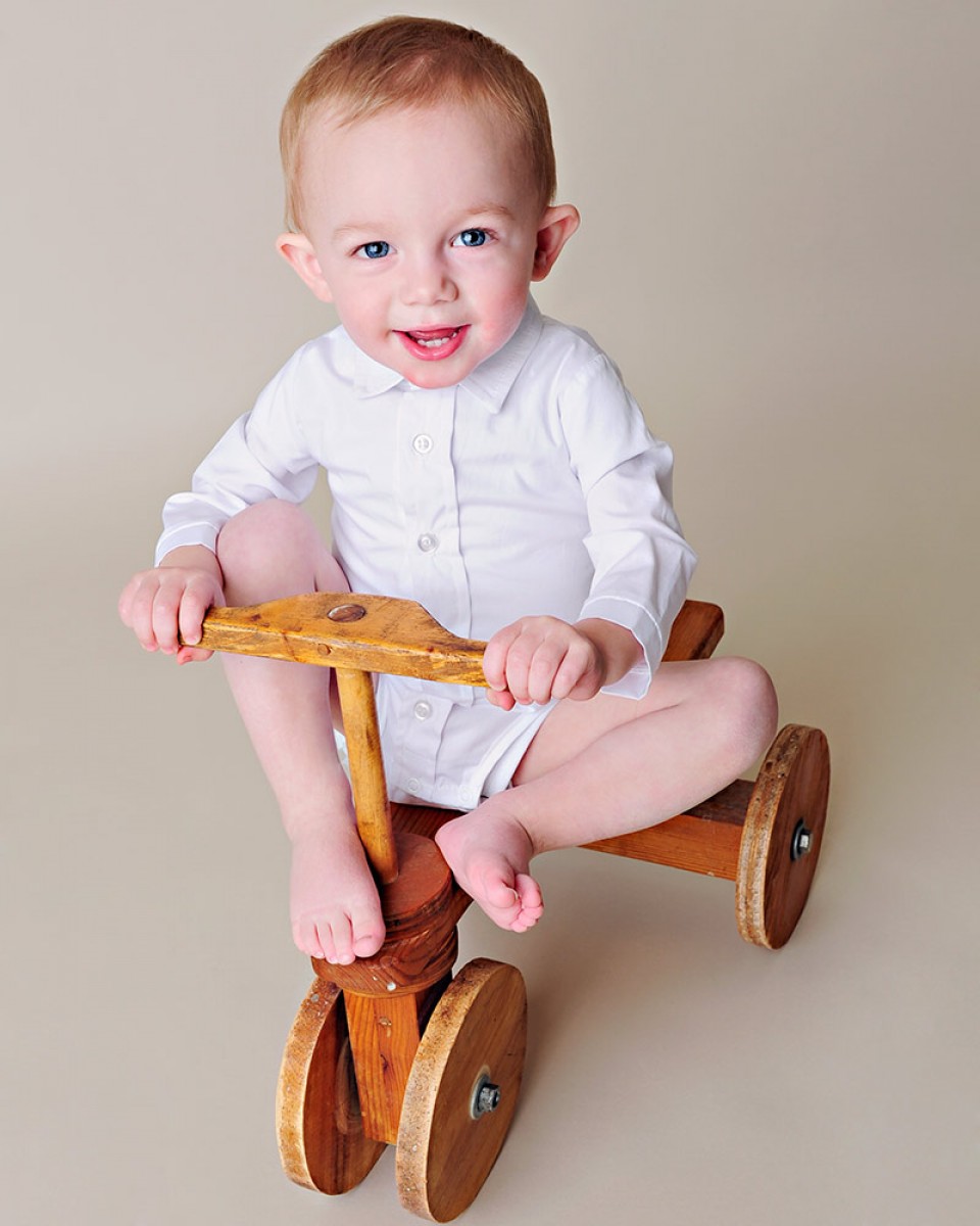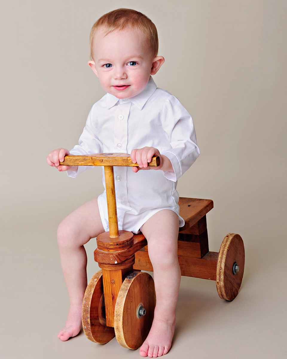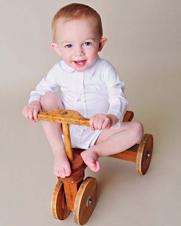 Layer this adorable cotton bodyshirt under his favorite baby pants for an effortlessly dressy look!