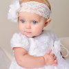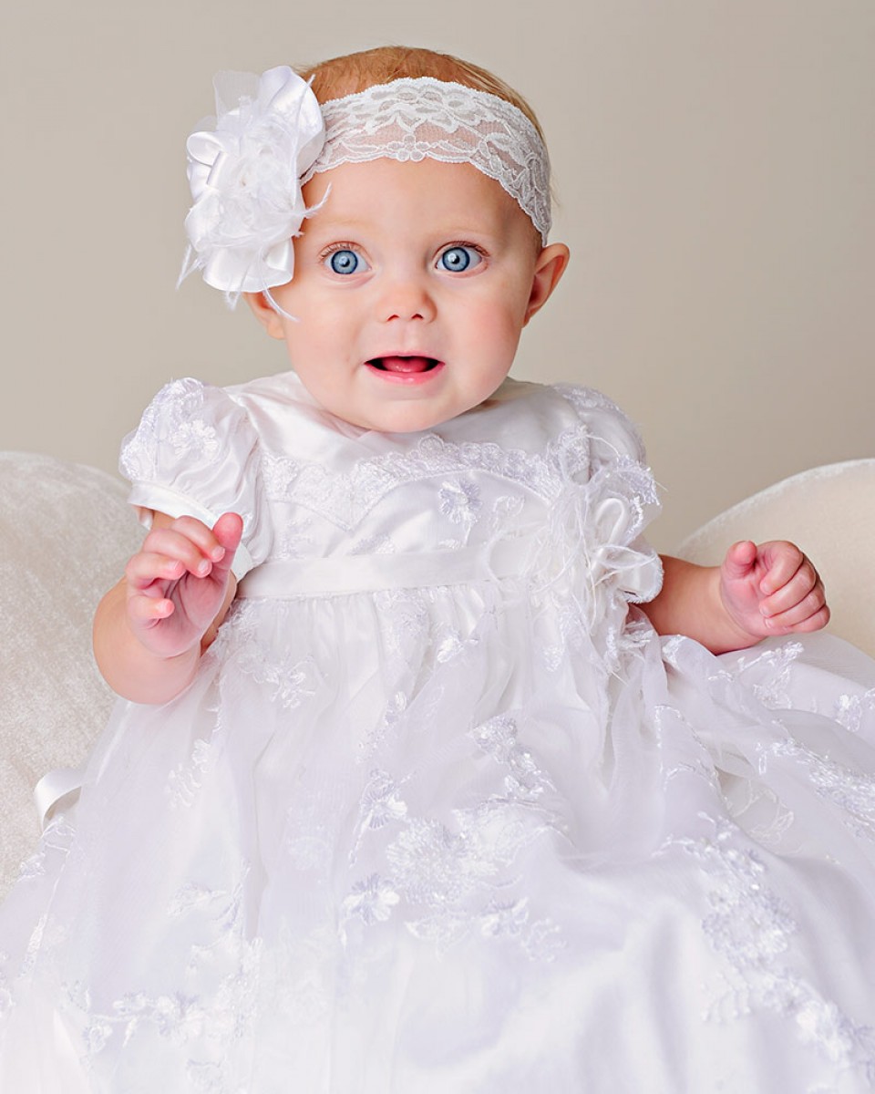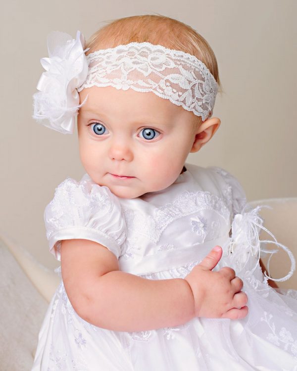 • 3-piece set includes christening gown, ruffled cotton slip, and headband (as pictured)