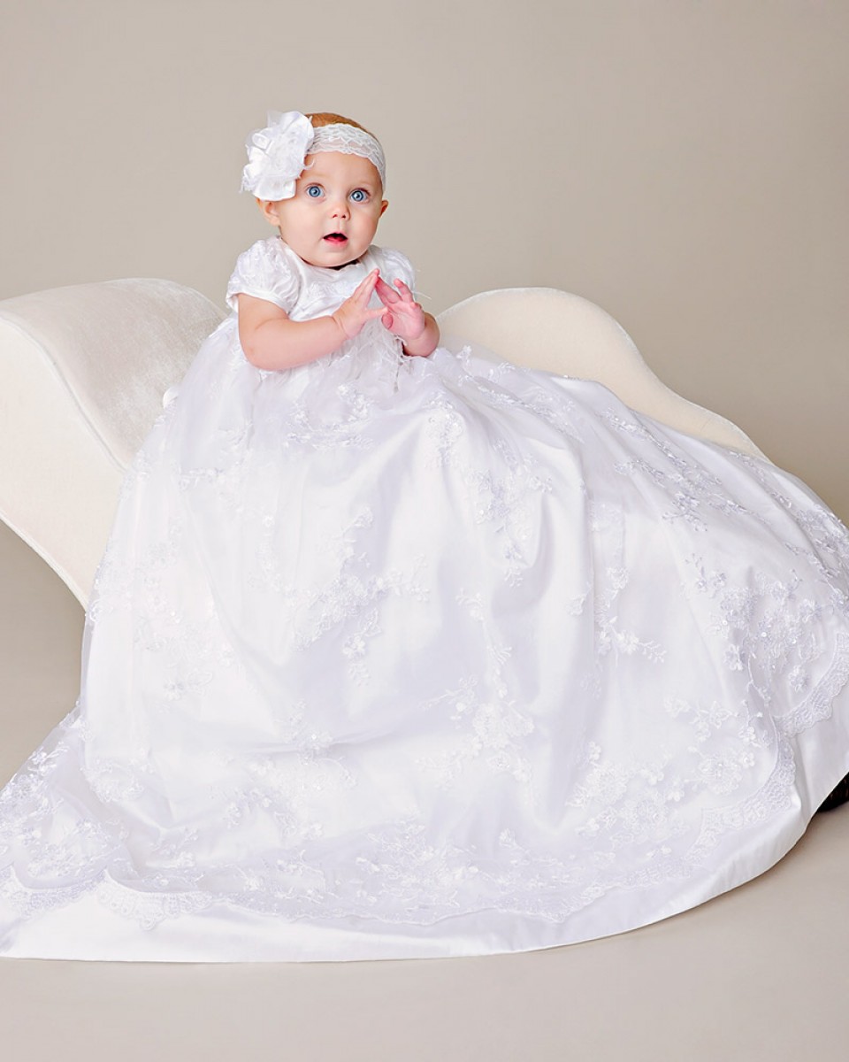 Shop One Small Child » Preslee Beaded Silk Christening Gown