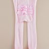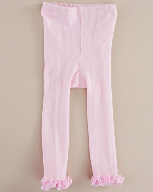 These cutie-pie pink cotton capri leggings feature a sassy rhumba-ruffle seat and sweet ankle frills!