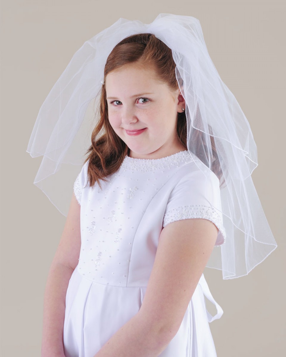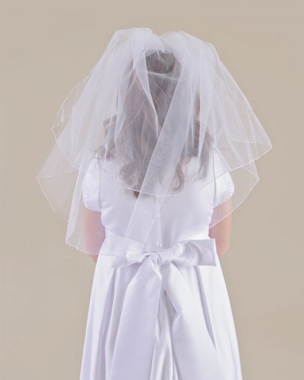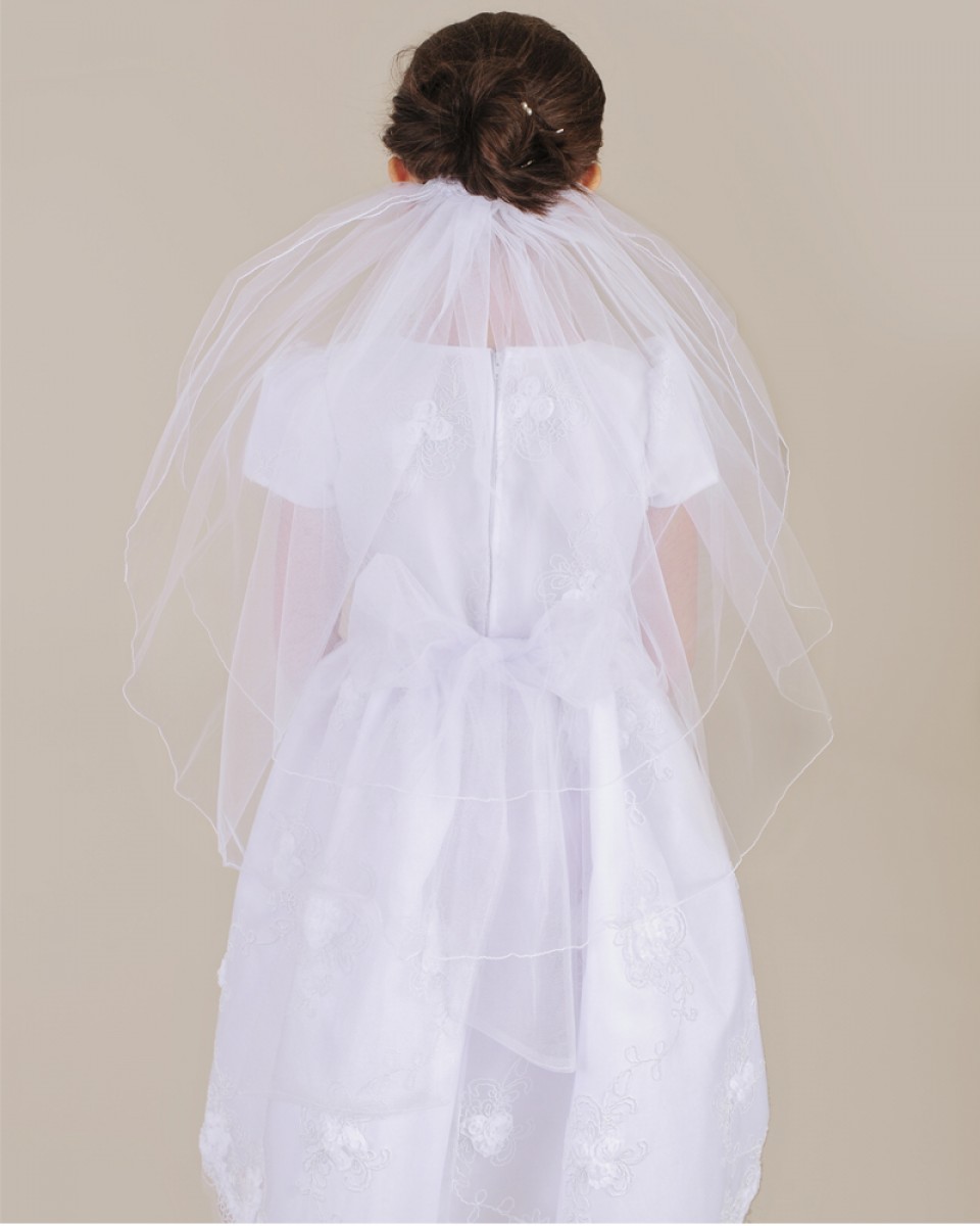 This ultra simple roll-edged veil is pretty on its own or works beautifully with any separate tiara, headband or comb.
