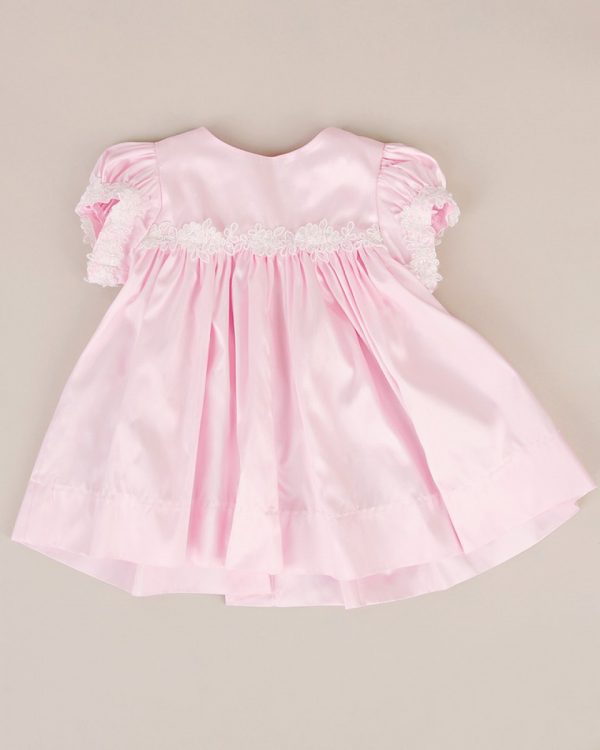 Pretty in pink: this silk shortie dress with puffy sleeves and beaded lace trim is the perfect choice for her fancy Easter dress!