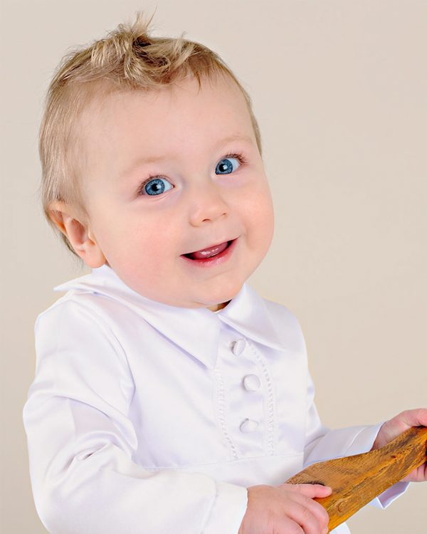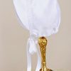 • Fabric: 100% polyester matte satin (a mid-to-heavy weight pure white polyester product with a “de-lustered” surface, which has a soft, rich glow rather than a glaring shine)