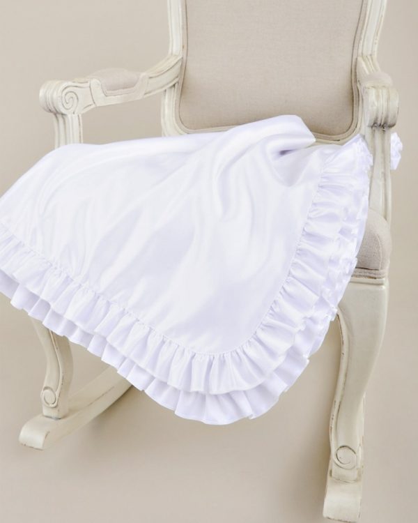 Fabrics: polyester matte satin (a mid-to-heavy weight pure white polyester product with a “de-lustered” surface, which has a soft, rich glow rather than a glaring shine) and 100% cotton flannel (a plain woven fabric with a soft “nap” on one side, known for being very soft and warm to the touch)