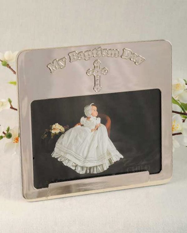 A sparkly cross embellishes this silver baptism frame, perfect for showcasing your precious little one’s special day! Add engraving for only a penny!