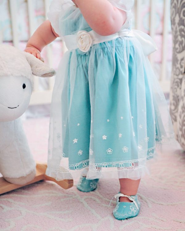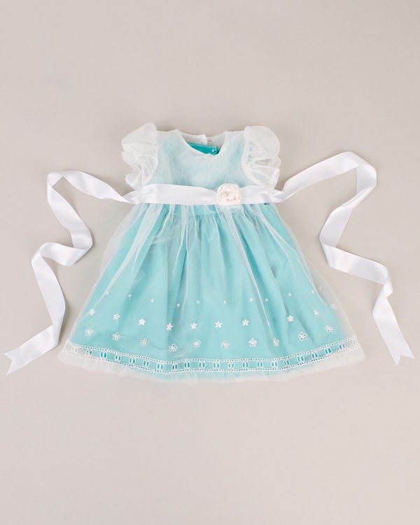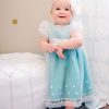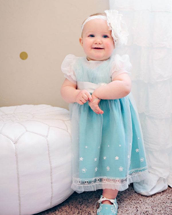 Pretty embroidery on Skye’s soft over-dress is highlighted by the turquoise silk of the slip-dress beneath. For added versatility, you can wear the slip-dress on it’s own, making this the perfect Spring/Summer frock for your little girl!