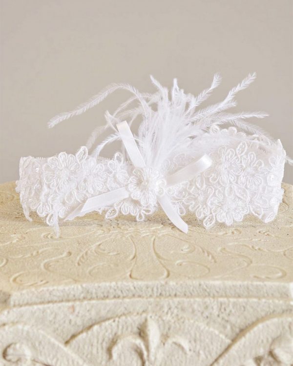 This handcrafted re-embroidered lace baby headband has a glamorous Victorian quality. Featuring ostrich feather plumes, silk ribbon bow, & bead clusters. . . A captivating addition to any creamy gown!