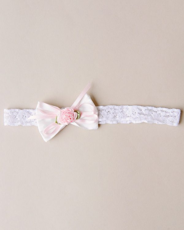 This pretty bow with pink accents is a fun accessory for our ‘touch of pink’ gowns.