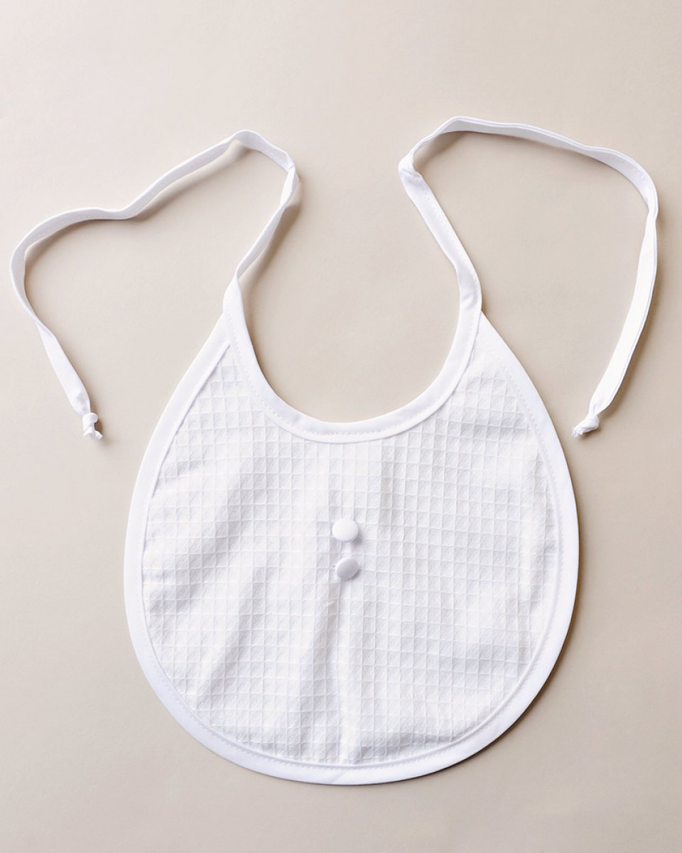 This waffle pique bib is a perfect complement to our popular Austin, Dillon, and Stefan christening outfits.