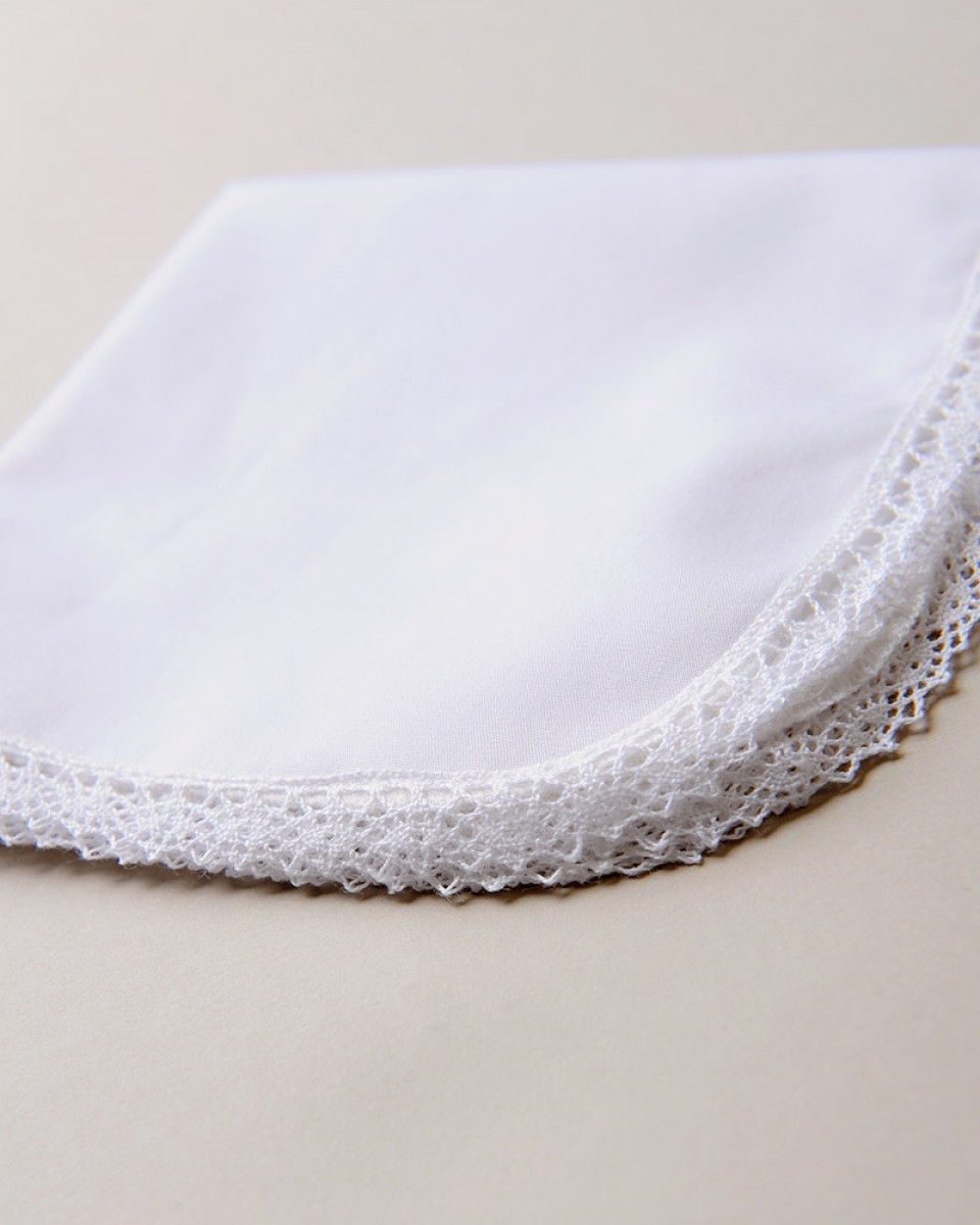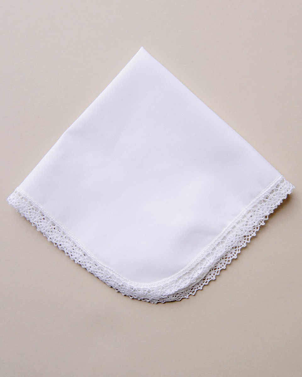 A beautiful keepsake to be cherished for a lifetime: hand crocheted lace trims a classic cotton hankie. Embroider with a single initial to add a personal touch. More details below.