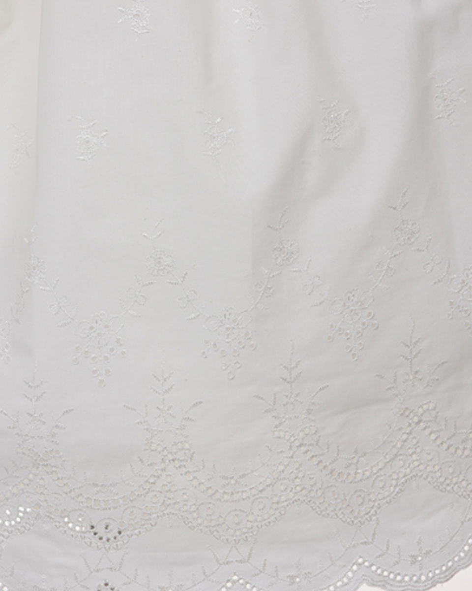 - Beautiful french eyelet designs with a scalloped hem line finish