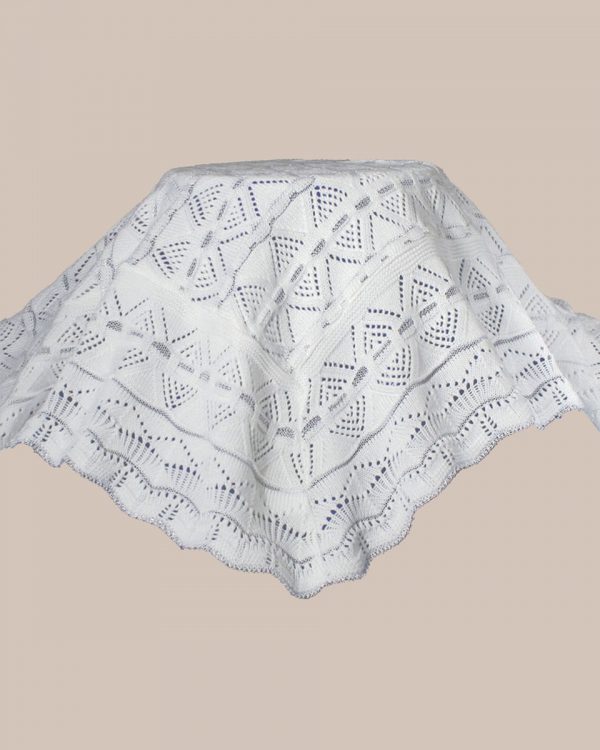 Beautiful knit christening shawl. Made from 100% acrylic knit. Imported of the highest quality and weight. (ASHAWL)