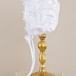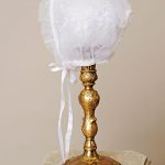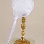 Absolutely lovely 34" heirloom christening gown with pleated front and elegant hand embroidery on bodice, front and hem. Ornamented with ribbon bows on each sleeve that can be removed if desired. Includes matching bonnet and slip. Handmade from 100% cotton. Hand wash. Shipped on elegant padded hanger and zippered vinyl bag. Heirloom preservation bag set recommended for long term storage. (CO32GS)