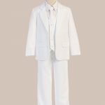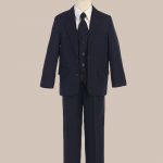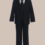 - 5-Piece formal boy's suit includes Jacket, Pants, Vest, Shirt and Tie