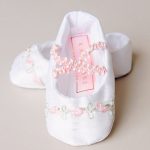 Adorable handmade silk christening slippers made to match our popular Jessa Gown.