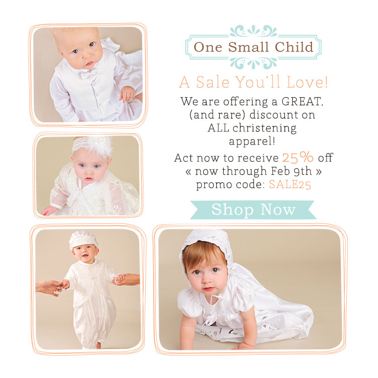 This almost never happens, but we’re throwing a surprise sale on all christening gowns and outfits through February 9th…order today!