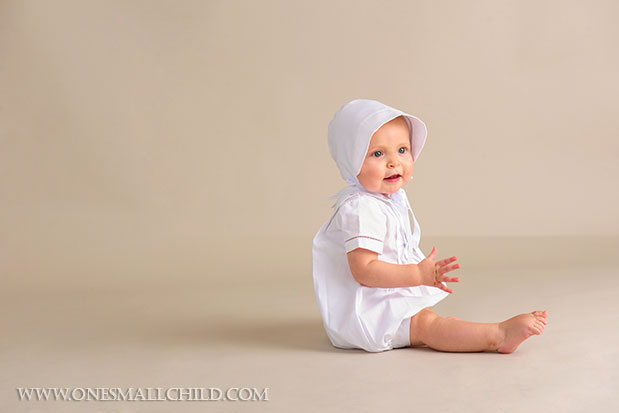We love when little boys are all dressed up, and nothing beats our silk boys Christening suits! We’ve added the new Kingston to our collection of event outfits for boys. Let me tell you all about it! We started with a soft cotton bodyshirt. (A comfortable and classic addition to any little gentleman’s wardrobe.) Then we added clean-cut silk dress shorts and an adorable three-button suit jacket. A classic tie and visor beret hat polish off his look. We love the layers of this outfit! They add tons of versatility, so you can change up his look to get just what you want!