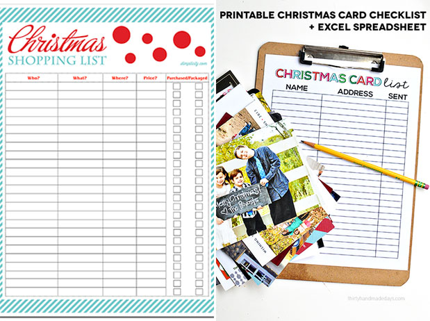 {We love mom helps! These lists are sure to keep your holidays organized! Find the Christmas Shopping from Dimplicity. | The Christmas Card List is on Thirty Handmade Days}