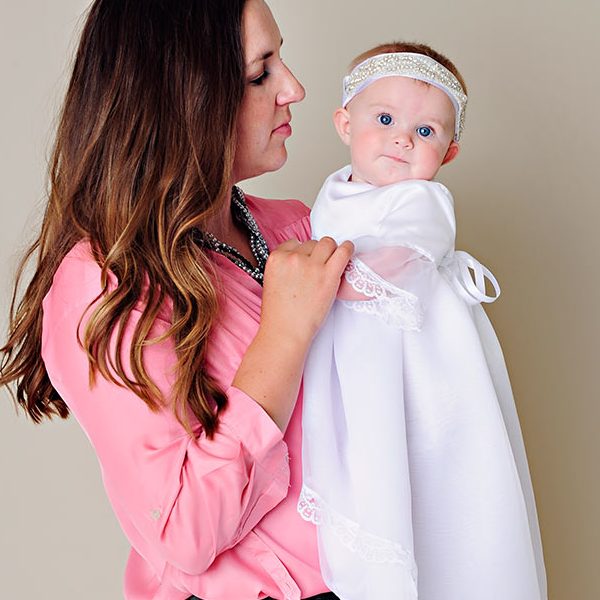 Lindsey has four children, all through the miracle of adoption. Three boys and one baby girl call her Mama. My third child and Lindsey’s third child even share a birthday. How cool is that!?! When Lindsey adopted her fourth child, her first little girl, I knew I wanted to help design her dress. I was ecstatic when Lindsey whole-heartedly agreed. Together we came up with a unique design made just for Norah.
