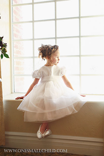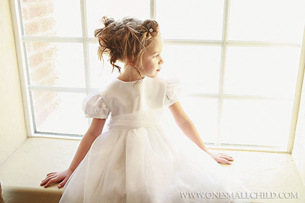 We don’t talk much about our flower girl dresses at One Small Child. We have a great line of dresses and accessories that are perfect for the pretty girl who precedes the bride. There’s something about seeing that precious little girl walking down the aisle. Maybe it’s the promise of her future; the hope that she’ll be walking her own aisle one day. Maybe it’s the way you can tell she feels like a princess; all dressed up with all eyes on her…