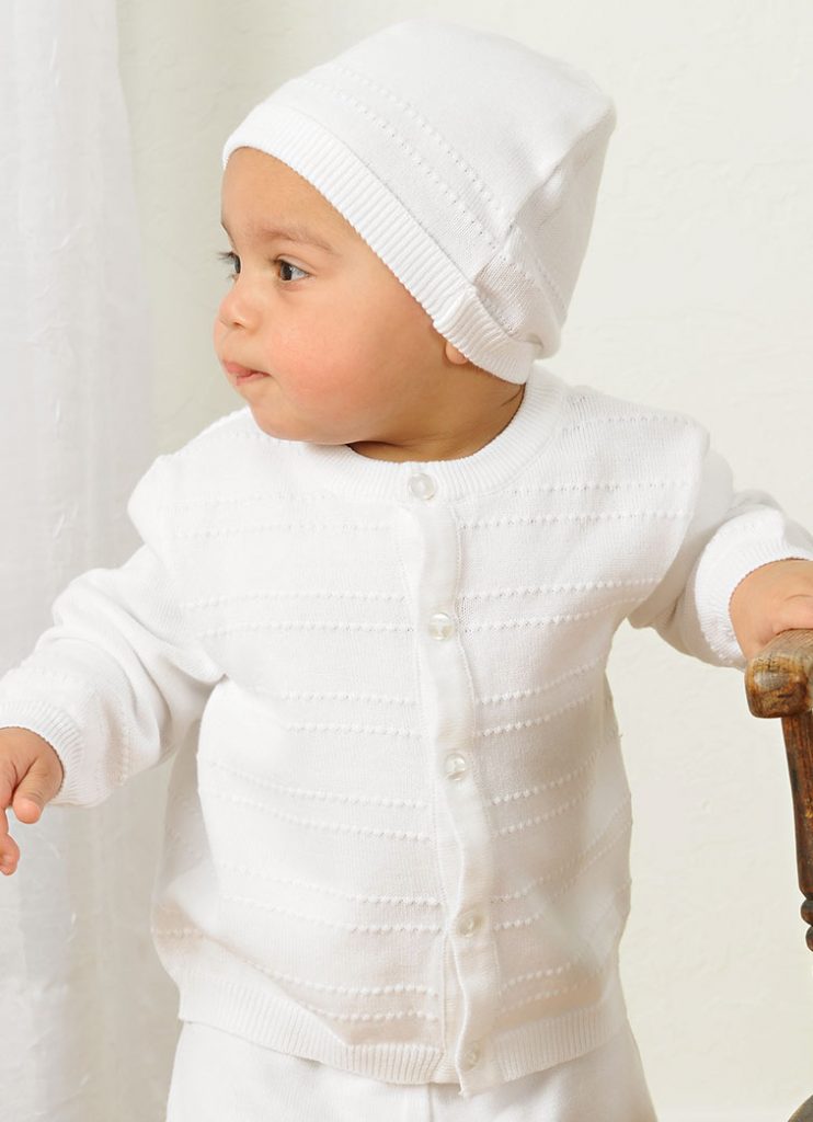 From our customer photo archives, this image = adorable times two! They look so precious in their Landen Suspender Baptism Outfits. Their mamma shared: