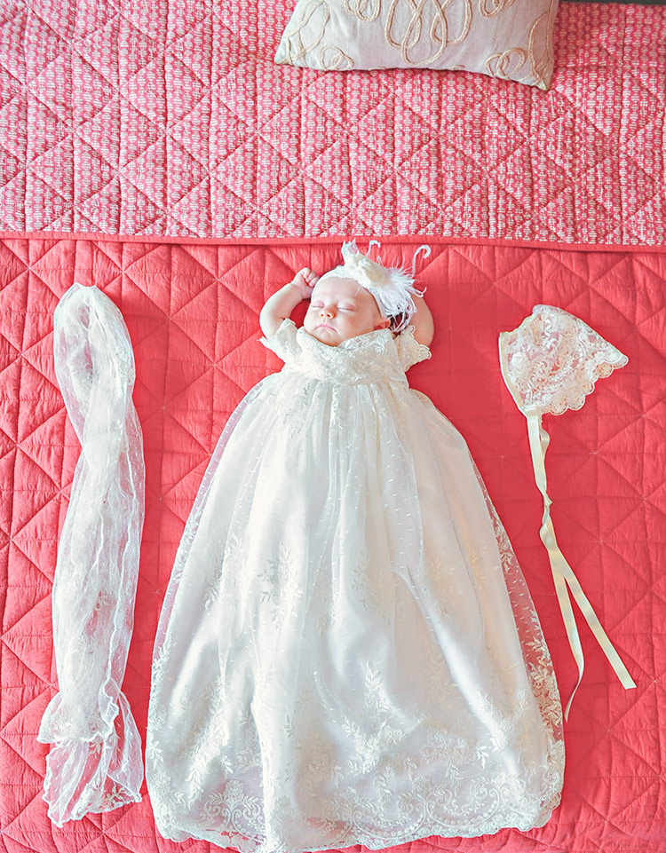 “I purchased the Memory christening gown for my daughter’s baptism back at the beginning of July. The gown took my breath away when it first arrived…it was simply everything I had dreamed of for my daughter! The lace was so very soft, and it looked like something I found in my grandmother’s attic!
