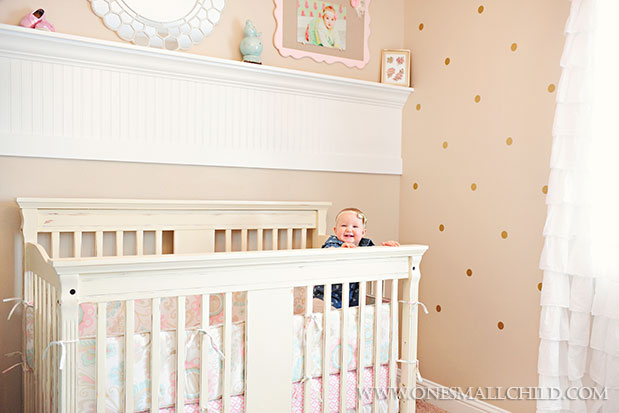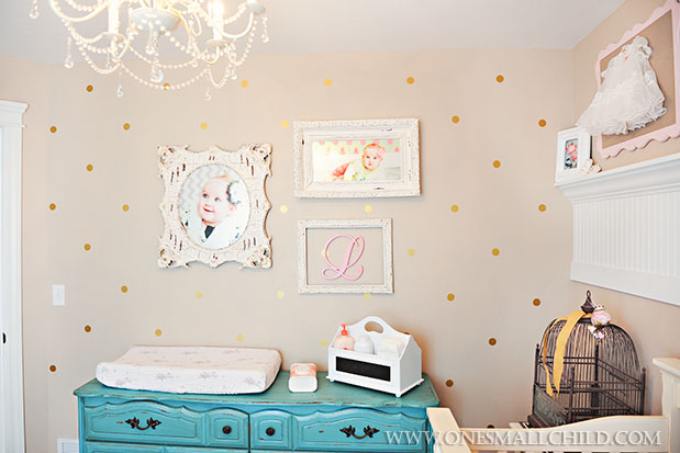 {These gold dots are the perfect blend of glamour and girly. And how ’bout that ruffled curtain!}