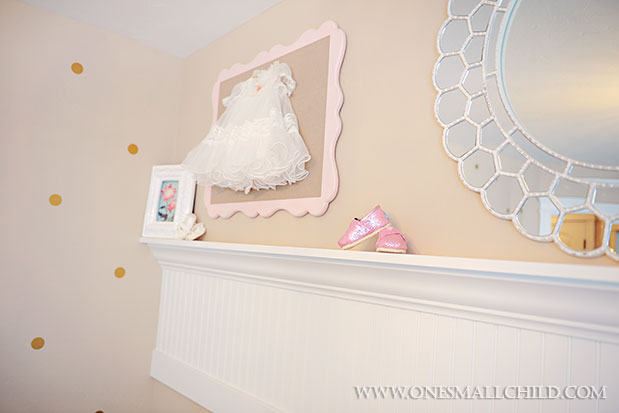 {How adorable are these bow push pins on Lily’s corkboard -great for showing off her little masterpieces as she grows!}