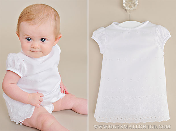 We’ve added another summer dress to our baby girl collection–the Everleigh. This bright white cotton eyelet dress is soft and timeless! (Did we mention machine washable?) Puffed sleeves add a feminine touch to the classic A-line structure. This shortie dress ends mid-thigh to upper knee on baby. Perfect for your little crawler! We love how versatile the Everleigh dress is! It’s perfect for summer picnic socials or as a comfy after-event dress. It also makes a sweet and simple Christening, Baptism or LDS blessing dress.