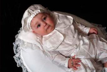 In celebration of One Small Child’s new ownership, we’re highlighting one of Katy’s personal designs-the Mitchell. Katy has designed a special outfit for each of her children’s blessings. She loves the opportunity to create something beautiful for each child and is happy to share these designs with you. The Mitchell was her most recent. She wanted something that had little man written all over it for her adorable baby boy. So, she decided to design an adorable 4-piece silk suit. It turned out perfect for her little guy!
