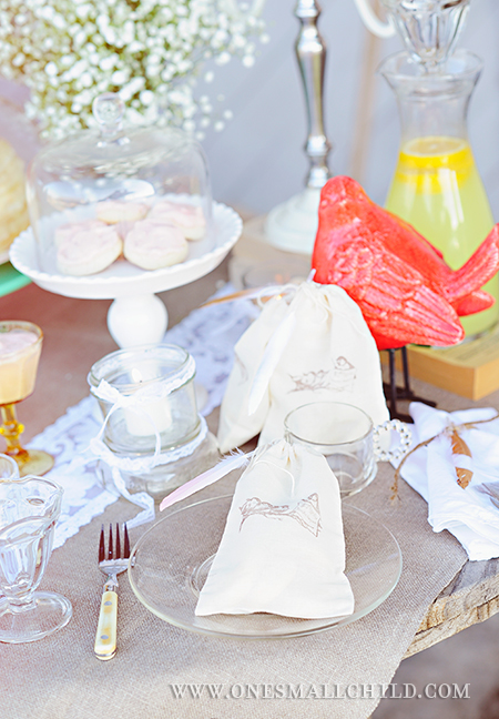 For favors, we filled these precious bird muslin bags (from Yellow Flower Designs on Etsy) with to-die-for sugar cookies (recipe here).